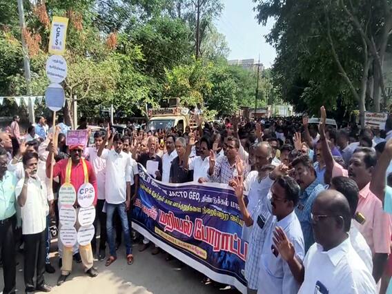 10 அம்ச கோரிக்கைகளை வலியுறுத்தி ஜாக்டோ ஜியோ அமைப்பினர் திண்டுக்கல்லில் சாலை மறியல் போராட்டத்தில் ஈடுபட்ட அரசு ஊழியர்கள் 500க்கும் மேற்பட்டோர் கைது செய்யப்பட்டனர்.