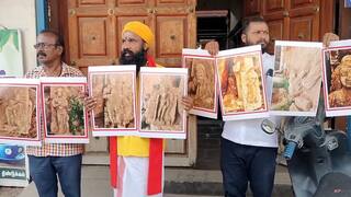 தொல்பொருள் துறையினர் அபிராமி கோயிலின் சிலை மற்றும் தூண்களை கோயிலிலேயே அருங்காட்சியகம் அமைத்து பக்தர்களின் பார்வைக்கு வைக்க வேண்டும் என புகைப்படங்களுடன் இந்து தமிழர் கட்சி உள்ளிட்ட இந்து அமைப்பினர் நூதன போராட்டம். திண்டுக்கல் அபிராமி அம்மன் கோவிலில் இந்து தமிழர் கட்சி நிறுவனத் தலைவர் ராம ரவிக்குமார் தலைமையில் இந்து அமைப்பினர் பலர் கோயிலின் சிலை புகைப்படங்களை வைத்து நூதன போராட்டத்தில் ஈடுபட்டனர்.