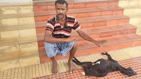 திண்டுக்கல் மாவட்டம் பழனியருகே உள்ளது கோதைமங்கலம் ஊராட்சி. இந்த ஊராட்சிக்கு உட்பட்ட கருப்பண கவுண்டன்வலசு கிராமத்தை சேர்ந்த விவசாயி ராஜேந்திரன். விவசாயியான இவருக்கு சொந்தமாக 10 ஆடுகள் உள்ளன. இந்நிலையில் நேற்று அப்பகுதியில் உள்ள தெருநாய்கள் ராஜேந்திரன் வளர்த்துவந்த ஆடுகளை கடித்ததில் 3 ஆடுகள் உயிரிழந்தது. மேலும் ஒரு ஆடு உயிருக்கு ஆபத்தான நிலையில் கிடந்துள்ளது. இதையடுத்து உங்களை ஊராட்சி மன்ற தலைவர் செல்வகுமார் இடம் சென்று தனது ஆடுகளை தெருநாய்கள் கடித்து விட்டதாகவும் தொடர்ந்து தெருநாய்களின் தொல்லை அதிகரித்துள்ளதாகவும், தெரு நாய்களை கட்டுப்படுத்த நடவடிக்கை எடுக்க வேண்டும் என்றும் தெரிவித்ததாக தெரிகிறது.