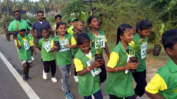 வத்தலக்குண்டில் இயற்கையை பாதுகாக்க வலியுறுத்தி விழிப்புணர்வு மாரத்தான் ஓட்டம் நடைபெற்றது. பள்ளி மாணவர்கள் மரக்கன்றுகளை கையில் ஏந்தி ஓட்டத்தில் பங்கேற்றனர்.
