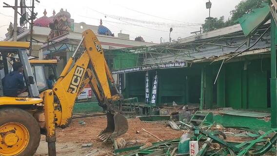 தொடர்ந்து நீதிமன்ற உத்தரவின் பேரில் இன்று வருவாய்த்துறை, கோயில் நிர்வாகம் மற்றும் போலீசார் உதவியுடன் பத்துக்கும் மேற்பட்ட ஜேசிபி வானங்களை கொண்டு வரபட்டு கட்டிடங்களை இடித்து அகற்றும் பணி நடைபெற்று வருகிறது. மேலும் பழனி மலை அடிவாரத்தில் படிப்பாதை அருகில் பல ஆண்டுகளாக இயங்கி வந்த பிரபல தனியார் பஞ்சாமிர்த கடையான சித்தநாதன் பஞ்சாமிர்த கடையும் நீதிமன்ற உத்தரவின் பேரில் இடித்து அகற்றப்பட்டது.