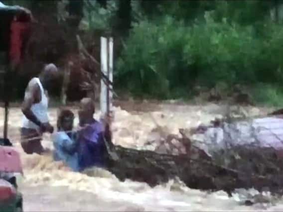 அப்போது பணியில் இருந்த காவல்துறையினர் அவர்களை தடுத்து எச்சரித்தும், போதையில் இருந்தவர்கள் செவி சாய்க்காமல் காரை ஓட்டிச்சென்றபோது கார் தரைப்பாலத்திலிருந்து தண்ணீருக்குள் இழுத்துச் செல்லப்பட்டது. இதனால் காரில் இருந்தவர்கள் பயத்தில் அலறினர். அதிர்ஷ்டவசமாக அங்கிருந்த தடுப்புக்கம்பி ஒன்றில் கார் சிக்கியதால், வெள்ளத்தில் அடித்துச்செல்லப்படாமல் கார் அங்கேயே நின்றது. அதனைத் தொடர்ந்து காரில் இருந்தவர்கள் காரில் இருந்து வெளியே வந்து காரின் மீது ஏறி அமர்ந்து உயிர்தப்பினர்.
