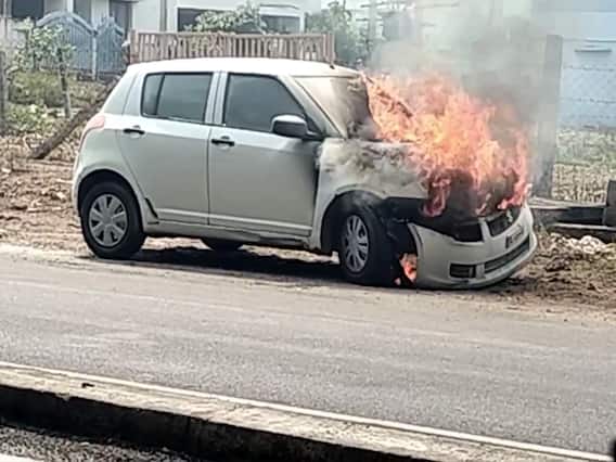 இதற்கிடையே அங்கு வந்த ரமேஷ் தனது கார் தீப்பற்றி எரிவதை பார்த்து செய்வதறியாது தவித்தார். இந்த நிலையில் சம்பவ இடத்துக்கு விரைந்து வந்த தீயணைப்பு வீரர்கள் தண்ணீரை பீய்ச்சி அடித்து காரில் பற்றிய தீயை போராடி அணைத்தனர். இருப்பினும் காரின் முன்பகுதி மற்றும் என்ஜின் முழுமையாக எரிந்து சேதமானது.