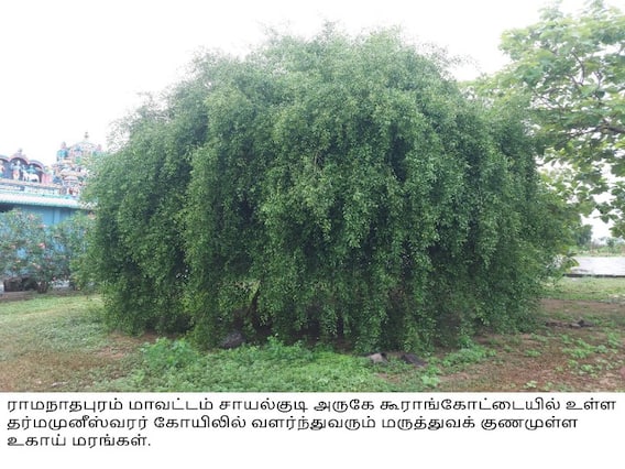 ராமநாதபுரம் மாவட்டம் சாயல்குடி அருகே கூராங்கோட்டையில் உள்ள தர்மமுனீஸ்வரர் கோயிலில் மருத்துவக் குணமுள்ள உகாய் மரங்கள் இயற்கையாகவே வளர்ந்து வருகின்றன. ராமநாதபுரம் மாவட்டம் வறண்ட பகுதி என சொல்லப்பட்டாலும் இங்கு பல அரியவகை மூலிகைத் தாவரங்கள் அய்யனார், கருப்பசாமி, முனீஸ்வரர் உள்ளிட்ட கிராம கோயில்களில் பல நூற்றாண்டுகளாக இயற்கையாகவே வளர்ந்து வருகின்றன. அவ்வகையில் சாயல்குடி அருகிலுள்ள கூராங்கோட்டை தர்மமுனீஸ்வரர் கோயில் வளாகத்தில் மட்டும் 20க்கும் மேற்பட்ட உகாய் மரங்கள் குடைபோல் வளைந்து வளர்ந்துள்ளன. இதுகுறித்து இராமநாதபுரம் தொல்லியல் ஆய்வு நிறுவனத்தின் தலைவர் வே.ராஜகுரு கூறியதாவது,