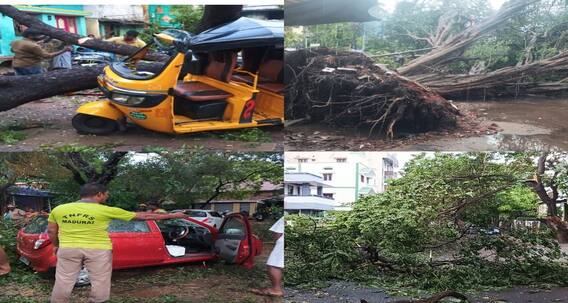 மதுரை மாநகரில் 15 நிமிடம் சூறைக்காற்றுடன் வெளுத்துவாங்கிய கனமழை - 50க்கும் மேற்பட்ட மரங்கள், 20க்கும் மேற்பட்ட மின்கம்பங்கள் உடைந்து விழுந்து பலத்த சேதம் - கடும் போக்குவரத்து நெரிசலில் சிக்கித் தவிக்கும் வாகனங்கள்.