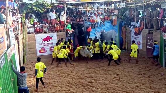 தேனி மாவட்டம் சின்னமனூர் அருகே அய்யம்பட்டியில் உள்ள ஏழைகாத்தம்மன் ஸ்ரீவல்லடிகாரசுவாமி கோயில் மாசித் திருவிழாவை முன்னிட்டு நேற்று ஜல்லிக்கட்டு போட்டி நடந்தது. இதனை மாவட்ட ஆட்சியர் ஷஜீவனா கொடி அசைத்து துவக்கி வைத்தார். முன்னதாக ஜல்லிக்கட்டு உறுதிமொழியை ஆட்சியர் முன்னிலையில் மாடுபிடி வீரர்கள் எடுத்துக் கொண்டனர். அதனைத் தொடர்ந்து கோயில் காளைகள் முதலாவதாக அவிழ்த்துவிட்டு பின்னர் ஜல்லிக்கட்டு காளைகள் வாடிவாசலில் இருந்து வெளியேறியது.