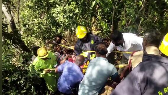 இந்த விபத்தின் போது தனியார் பேருந்து முன் இருக்கையில் அமர்ந்திருந்த நித்தியா என்ற பெண் தூக்கி வீசப்பட்டு 100 அடி பள்ளத்தில் விழுந்தார். மேலும் பேருந்தில் பயணித்த பத்துக்கும் மேற்பட்ட பயணிகள் லேசான காயங்களுடன் உயிர் தப்பியுள்ளனர்.100 அடி பள்ளத்தில் தூக்கி வீசப்பட்ட பெண்ணை தீயணைப்புத் துறையினர் விரைந்து வந்து படுகாயங்களுடன் இருந்த நிலையில் கயிறு கட்டி மேலே தூக்கி வந்து தேனி அரசு மருத்துவக் கல்லூரி மருத்துவமனையில் சிகிச்சைக்காக அனுமதித்துள்ளனர்.