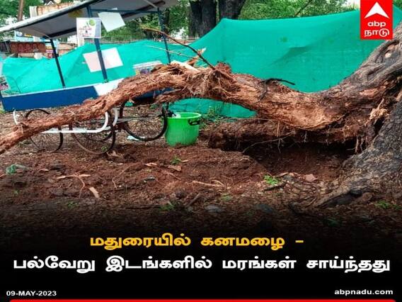 ஒரு சில இடங்களில் சூறாவளி காற்று வீசுவது போல காற்று பலமாக வீசிய நிலையில் மதுரை மாநகராட்சி அலுவலகம் மற்றும் பூங்காக்களில் இருந்த 50க்கும் மேற்பட்ட மரங்கள் காற்றில் சாய்ந்து விழுந்தன இதே போன்று தமுக்கம் தல்லாகுளம் கேகே நகர் , அண்ணாநகர் மதுரை மாவட்ட நீதிமன்றம் முன்பாக என பல்வேறு பகுதிகளிலும் பழமையான மரங்கள் சாய்ந்து விழுந்த நிலையில் மின்கம்பங்கள், தொலைபேசி இணைப்பு கம்பங்களும் ஆங்காங்கே சாலைகளில் சரிந்து விழுந்ததால் அந்தப் பகுதிகளில் கடுமையான போக்குவரத்து நெரிசல் ஏற்பட்டுவருகிறது.