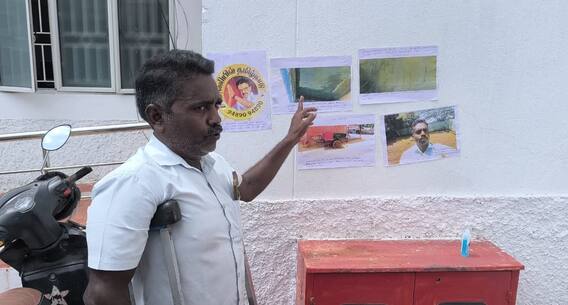 ஆனாலும் எந்தவித நடவடிக்கையும் எடுக்காத நிலையில் தற்போது ஓரணியில் தமிழ்நாடு என வீடு வீடாக சென்று ஸ்டிக்கர் ஒட்டுகிறார்கள். அதற்கெல்லாம் பணம் இருக்கும் அரசுக்கு, இது போன்ற பொதுமக்களுக்கான பிரச்னையை தீர்ப்பதற்கு பணம் இல்லையா?. என்பதை எடுத்துரைக்கும் வகையில் தான் தனது பகுதியில் உள்ள பிரச்னைகளை ஸ்டிக்கராக எடுத்து வந்து அதிகாரிகளுக்கு தெரிய வேண்டும், என்பதற்காக ஒட்டியுள்ளேன்” என்றார். மீண்டும் திமுக ஆட்சிக்கு வந்தால் அனைவரும் சுடுகாட்டுக்கு போகும் நிலைதான் உருவாகும். எனவும் மாற்றுத்திறனாளிகளில் கைகளில் இருக்கும் ஊன்றுகோல்கள் கூட காணாமல் போகும் நிலைக்கு தள்ளப்படுவார்கள்” என தனது வேதனையை வெளிப்படுத்தினார்.