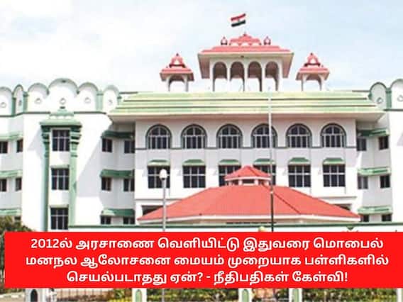 2012 அரசாணையின்படி தமிழ்நாட்டிலுள்ள பள்ளி அனைத்திலும் மொபைல் மனநல ஆலோசனை மையம் அமைத்து முறையாக பள்ளி மாணவ, மாணவியருக்கு மனநல ஆலோசனை வழங்க நடவடிக்கை எடுக்க உயர்நீதிமன்ற மதுரைக்கிளை உத்தரவிட்டது.