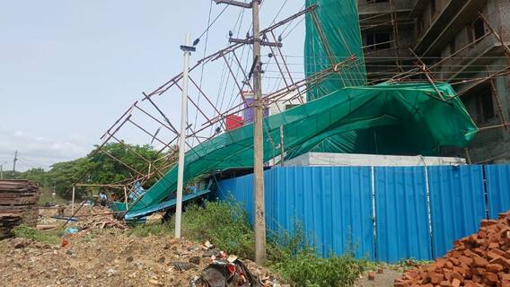 மதுரை மாநகர் நேரு நகர் பகுதியில் தனியார் கட்டுமான நிறுவனத்தின் சார்பில் 6 மாடி குடியிருப்புகளுக்கான கட்டுமானப் பணிகள் கடந்த சில மாதங்களாக நடைபெற்று வருகிறது. நேரு நகர் திருவள்ளுவர் தெரு பகுதியின் பிரதான சாலையோரத்தில் மற்றொரு அடுக்குமாடி குடியிருப்பு அருகிலேயே கட்டப்பட்டுவந்த நிலையில் திடீரென கட்டிட பணிகளுக்காக அமைக்கப்பட்ட 42 அடி இரும்பு சாரமானது திடீரென சரிந்துவிழுந்து விபத்து ஏற்பட்டது. இரும்பு சாரம் சரிந்த விபத்தில் இரும்பு சாரம் முழுவதும் அந்த பகுதியில் உள்ள மின் கம்பங்களின் மீது சரிந்து விழுந்தது. இதனால் மின்கம்பங்கள் உடைந்து நொறுங்கியதோடு, மின்கம்பிகள் முழுவதுமாக சேதமடைந்து அறுந்து தொங்கியது. நல்வாய்ப்பாக அந்த பகுதியில் விபத்து ஏற்பட்டபோது ஆட்கள் மற்றும் வாகனம் நடமாட்டம் இல்லாத நிலையில் பொதுமக்கள் பாதிப்பின்றி தப்பினர்.
