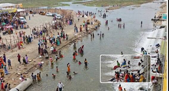 கொளுத்தும் கோடை வெயிலில் குளுகுளுவென வைகையாற்றில் உற்சாகமாக குளித்துமகிழும் பொதுமக்கள். சுற்றுலா தளம்போல மாறிய வைகையாறு. - மதுரை மட்டுமின்றி பல்வேறு மாவட்டங்களை சேர்ந்த சுற்றுலாபயணிகளும் வருகைதந்து குளித்து செல்கின்றனர்.