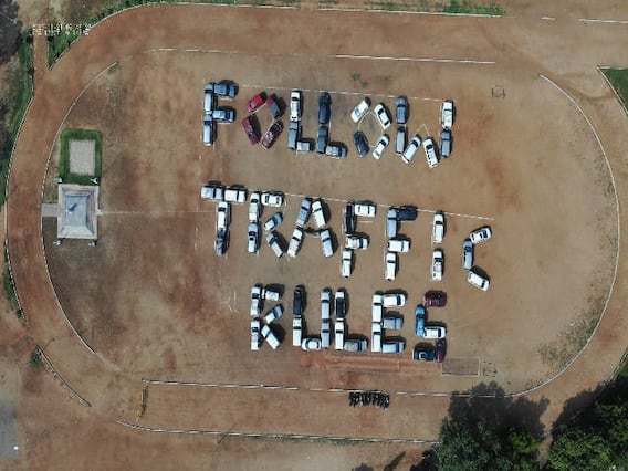 இதனை தொடர்ந்து போக்குவரத்து விதிமீறல்கள் காரணமாக பறிமுதல் செய்யப்பட்ட வாகனங்கள் மூலமாகவே போக்குவரத்து விழிப்புணர்வு ஏற்படுத்தும் வகையில் "FOLLOW TRAFFIC RULES" என்ற வாசக வடிவில் பறிமுதல் செய்யப்பட்ட கார்களை நிறுத்திவைத்து அதனை ஹெலிகேம் மூலமாக வீடியோவாக பதிவுசெய்து வெளியிட்டு நூதன முறையில் விழிப்புணர்வை ஏற்படுத்தினர்.