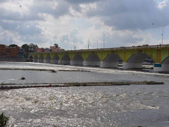 மதுரை வைகை ஆற்றில் 3ஆவது நாளாக பெருக்கெடுத்து ஓடும் வெள்ளநீர் - இரு கரைகளை உரசியபடி கடல் போல காட்சியளிக்கும் வைகையாறு - கண்டு ரசிக்கும் பொதுமக்கள்.