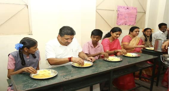 மாணவிகளுடன் அமர்ந்து உணவருந்தினார் அமைச்சர்