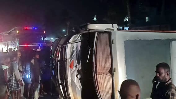 அப்போது அந்த பெண்ணின் மீது மோதாமல் இருப்பதற்காக வாகன ஓட்டுனர் வாகனத்தை திருப்பி உள்ளார். இதில் நிலை தடுமாறி சுற்றுலா வாகனம் கவிழ்ந்துள்ளது. அப்போது சென்னையில் இருந்து குமுளி சென்ற கார் ஒன்று இந்த வாகனத்தின் மீது மோதியுள்ளது. இந்த விபத்து சம்பவத்தில் 407 சுற்றுலா வாகனத்தில் 20க்கும் மேற்பட்ட பயணிகள் வந்துள்ளனர். இதில் பயணித்த பயணிகளில் ஒரு சிலருக்கு மட்டும் சிறுசிறு காயங்கள் ஏற்பட்டது . அதிர்ஷ்டவசமாக யாருக்கும் பெரிய அளவில் காயமும் உயிர்ச்சேதமும் ஏற்படவில்லை.