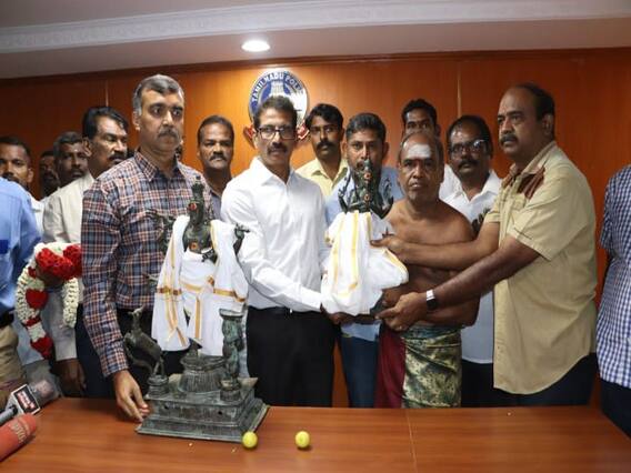 மதுரையில் சிலை திருட்டு தடுப்பு பிரிவு, காவல்துறை இயக்குநர் ஜெயந்த் முரளி , சிலை தடுப்புபிரிவு காவல்துறை தலைவர் தினகரன் ஆகியோர் செய்தியாளர்களை சந்தித்து பேசினர். அதில், “ 1985-ம் ஆண்டு தென்காசி மாவட்டம் ஆழ்வார்குறிச்சி பகுதியில் உள்ள அருள்மிகு நரசிங்கநாதர் கோயிலில் இருந்து 11-ம் நூற்றாண்டில் உருவாக்கப்பட்ட கங்காள நாதர் மற்றும் அதிகார நந்தி ஆகிய இரண்டு ஐம்பொன் சிலைகள் கடத்தப்பட்டு காணாமல் போயுள்ளன.