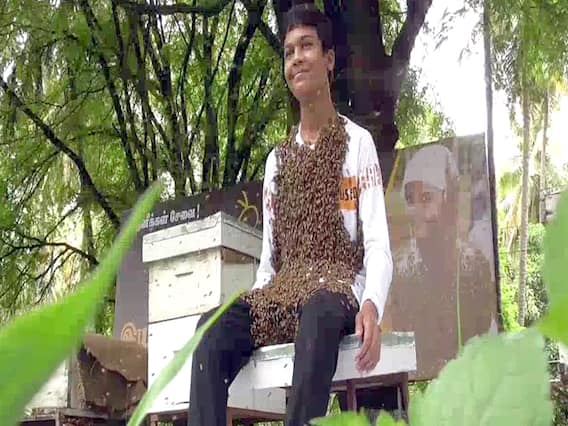 இந்நிலையில் உலக தேனீக்கள் தினத்தை முன்னிட்டு, தேனீக்கள் குறித்த விழிப்புணர்வை ஏற்படுத்தும் வகையில் தனது உடல் முழுவதும் தேனீக்களை பரவவிட்டது பரபரப்பை ஏற்படுத்தியுள்ளது. மேலும் தேனீக்கள் வளர்ப்பு குறித்து பண்ணை நிர்வாகி இசாக் கூறியதாவது, தேனீக்கள் 5 வகைப்படும். மலைத்தேனீ, கொம்புத் தேனீ, இத்தாலி தேனீ, இந்தியத் தேனீ, கொசுத் தேனீ போன்றவை ஆகும். இவைகளில் கொசுத்தேனீக்களால் சேகரிப்படும் தேன்களுக்கு மவுசு அதிகம். ஒருகிலோ தேன் 6ஆயிரம் ரூபாய்வரை விற்பனை செய்யப்படுகிறது. மகரந்த சேர்க்கைக்கும், மகசூல் அதிகரிப்பிற்கும் தேனீக்கள் மிக அத்தியாவசியமானவை.