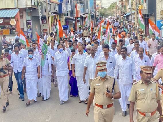 நடை பயணத்தில் முன்னாள் மத்திய நிதி அமைச்சர் ப.சிதம்பரம் பங்கேற்றார். அவர் நிறைவாக பேசுகையில்..,”