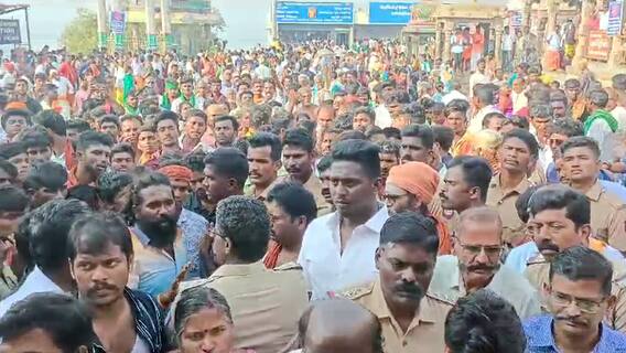 தங்களை தாக்கிய பாதுகாவலர் வரும் வரை நாங்கள் கலந்து செல்ல மாட்டோம் என பக்தர்கள் கூறி போராட்டத்தில் ஈடுபட்டதால் பெரும் பரபரப்பு ஏற்பட்டது. மேலும் கோவில் உதவி ஆணைய லட்சுமி அவர்கள் தாக்கியதாக கூறப்படும் கோவில் அதிகாரி மற்றும் பாதுகாவலர்களை சஸ்பெண்ட் செய்வதாக கூட்டத்தில் கூறினார். அதனைக் கேட்ட ஒரு பிரிவினர் சென்று விட்டார்கள். ஒரு பிரிவினர் அந்த பாதுகாவலர்கள் வரும் வரை நாங்கள் செல்ல மாட்டோம் என போராட்டத்தில் ஈடுபட்டனர்.
