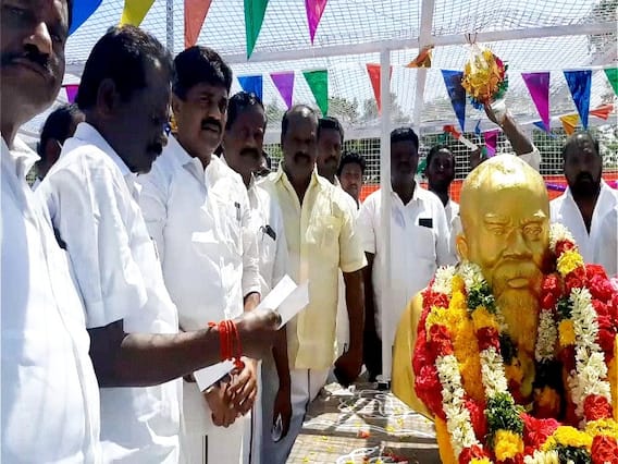 இதே போன்று ராமநாதபுரம் மாவட்டம் பரமக்குடியில் அருகே சமத்துவபுரத்தில் பெரியார் சிலைக்கு மாலை அணிவித்து திமுக எம்எல்ஏக்கள் மரியாதை செய்தனர். தந்தை பெரியாரின் 143 ஆவது பிறந்தநாள் விழா இன்று கொண்டாடப்பட்டு வருகிறது. தமிழகம் முழுவதும் திமுகவினர் பெரியார் சிலைக்கு மாலை அணிவித்து இனிப்பு வழங்கி கொண்டாடி வருகின்றனர். இதனையொட்டி, ராமநாதபுரம் மாவட்டம் பரமக்குடி அருகே பாம்பூர் சமத்துவபுரத்தில் அமைந்துள்ள பெரியார் சிலைக்கு திமுக எம்எல்ஏக்கள் காதர்பாட்சா முத்துராமலிங்கம், முருகேசன் ஆகியோர் மாலை அணிவித்து மரியாதை செய்தனர். பெரியாரின் பிறந்த நாள் சமூகநீதி நாளாக கடைபிடிக்கபட்டு வருவதையடுத்து திமுகவினர் உறுதிமொழி எடுத்துக்கொண்டனர்.