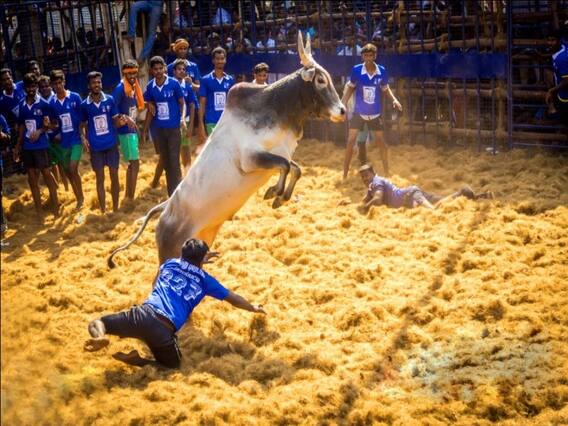 தமிழ்நாட்டில் ஜல்லிக்கட்டு போட்டிகள் நடத்துவதற்காக தமிழக அரசு ஜனவரி 10-ஆம் தேதி வெளியிட்டுள்ள அரசு ஆணைக்கு இடைக்கால தடை விதிக்கவும், கொரோனா தொற்று குறைந்த பின்பு ஜல்லிக்கட்டு போட்டியை நடத்த கோரி உயர்நீதிமன்ற மதுரை கிளையில் மனு தாக்கல் செய்யப்பட்டுள்ளது. தூத்துக்குடி மாவட்டம், திருச்செந்தூரை சேர்ந்த ராம்குமார் ஆதித்யன் உயர்நீதிமன்ற மதுரை கிளை மனு தாக்கல் செய்துள்ளார். அதில், "தமிழ்நாட்டில் கடந்த சில தினங்களாக கொரோனா தொற்று அதிகரித்து வருகிறது. இதனால் தமிழ்நாடு முழுவதும் இரவு நேர ஊரடங்கு மற்றும் ஞாயிற்றுக்கிழமைகளில் முழு ஊரடங்கு அமல்படுத்தப்பட்டுள்ளது.தற்போது, தமிழ்நாடு அரசு தரப்பில் ஜனவரி 10ஆம் தேதி புதிய அரசாணை வெளியிடப்பட்டுள்ளது இதன்படி, தமிழ்நாட்டில் ஜல்லிக்கட்டுப் போட்டிகள் 300 வீரர்கள், 150 பார்வையாளர்கள் மற்றும் போட்டிகளில் கலந்துகொள்ளும் வீரர்கள், மாடு வளர்ப்போர் 2 தவணைத் தடுப்பூசியும் செலுத்தி இருக்க வேண்டும் என பல்வேறு கட்டுப்பாடுகளை விதித்து போட்டிகள் நடத்த அனுமதி வழங்கப்பட்டுள்ளது.