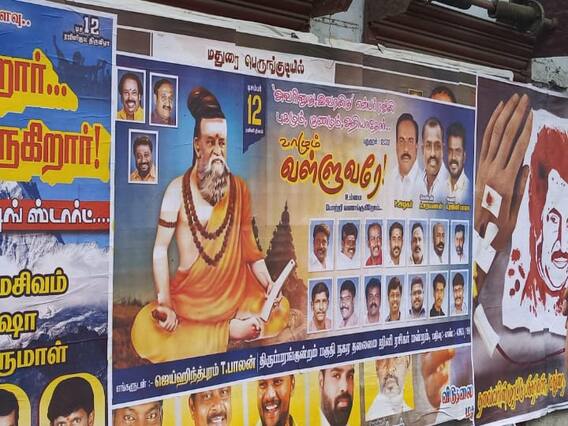 சூப்பர் ஸ்டாராக ரஜினிகாந்தின் பிறந்தநாள் நாளை (டிசம்பர் 12ம் தேதி) கொண்டாடப்படுவதை முன்னிட்டு ரஜினி ரசிகர்கள் தமிழகம் முழுவதிலும் போஸ்டர்கள் ஒட்டி பிறந்த நாள் வாழ்த்துக்களை தெரிவித்து வருகின்றனர். இதன் ஒரு பகுதியாக மதுரை மாநகரில் வித்தியாசமாக போஸ்டர் ஒன்றை ஒட்டியுள்ளார். அதில், வாழும் வள்ளுவரே என்ற வாசகங்கள் அடங்கிய போஸ்டர் உடன் ரஜினியை திருவள்ளுவர் போன்று சித்தரித்த வாரு அவரினிது இவரினிது என்பர் ரஜினி புகழும் குணமும் அறியாதோர் என்று புதுகுரல் எழுதிய போஸ்டர்கள் ஒட்டப்பட்டுள்ளது பரபரப்பை ஏற்படுத்தி உள்ளது.