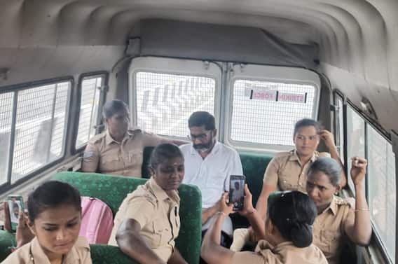 காவலில் எடுத்து விசாரிக்க நீதிமன்றம் அனுமதித்த நிலையில் பெண் காவல்துறையினரின் பாதுகாப்புடன் பெண் காவலர்களால் சவுக்கு சங்கர் அழைத்துச் செல்லப்பட்டார்.