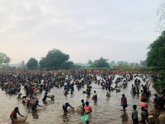 மதுரை மாவட்டம் மேலூர் அருகே சருகுவலையபட்டியிலுள்ள கம்புளியான் கண்மாயி அமைந்துள்ளது. இந்த கண்மாயில் வருடந்தோறும் மீன்பிடித் திருவிழா நடைபெறுவது வழக்கம். இந்நிலையில் இந்த ஆண்டு மீன்பிடி திருவிழாவில் சருகுவலையபட்டி மற்றும் அதனை சுற்றி உள்ள பகுதிகளான வடக்குவலையபட்டி, தனியமங்கலம், கீழவளவு, கீழையூர் உள்ளிட்ட பகுதிகளில் இருந்து ஏராளமான பொதுமக்கள் கலந்து கொண்டு இன்று அதிகாலையில் கண்மாயில் வந்து குவிந்தனர்.