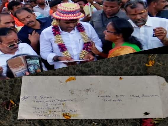 என் மண் - என் மக்கள் என்ற தலைப்பில் தமிழக பா.ஜ.க., மாநிலத்தலைவர் அண்ணாமலை நடைபயணம் மேற்கொண்டுள்ளார். கடந்த 28-ம் தேதி ராமேஸ்வரத்தில் துவங்கிய இந்த பயணத்தின் தொடர்ச்சியாக நேற்று சிவகங்கை மாவட்டம் திருப்பத்தூர் சட்ட மன்ற தொகுதிக்கு உட்பட்ட பகுதியில் நடைபயணம் மேற்கொண்டார். அப்போது திருப்பத்தூரில் உள்ள நான்கு முக்கு பகுதியில் பெண் ஒருவர் மனு ஒன்றை கொடுத்தார். அந்த மனு பெரியகடை வீதி பகுதியில் கீழே கிடந்தது மனு அளித்த பெண்ணுக்கு பெரும் அதிர்த்தியை ஏற்படுத்தியுள்ளது.
