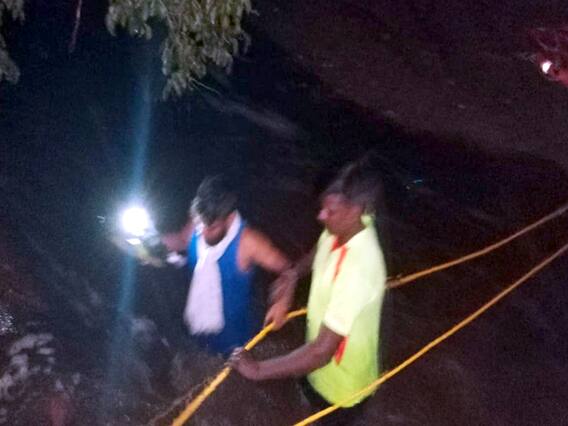 இதை அடுத்து கயிற்றின் மூலம் போலீசாரும் தீயணைப்பு துறையினரும் இணைந்து 200க்கும் மேற்பட்ட பக்தர்களை பாதுகாப்பாக மீட்டு அவர்களது வீடுகளுக்கு அனுப்பி வைத்தனர். திடீரென ஏற்பட்ட காற்றாற்று வெள்ளத்தில் 200க்கும் மேற்பட்ட பக்தர்கள் சிக்கிக்கொண்ட சம்பவத்தால் பரபரப்பு ஏற்பட்டது.