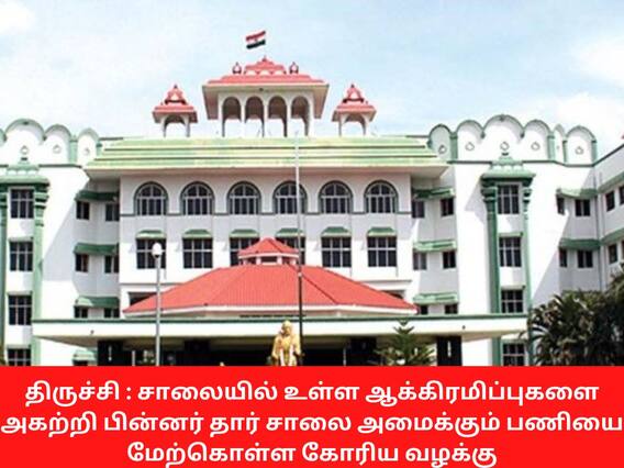 இதனையடுத்து நீதிபதிகள், ஆக்கிரமிப்புகளை அகற்றிய பின்னரே சாலை அமைக்கும் பணியை மேற்கொள்ள வேண்டும் என கருத்து தெரிவித்து வழக்கு குறித்து திருச்சி மாவட்ட ஆட்சியர், திருச்சி முசிறி வட்ட வருவாய் கோட்டாட்சியர் ஆகியோர் பதிலளிக்க உத்தரவிட்டு வழக்கு விசாரணை டிசம்பர் 13ஆம் தேதிக்கு ஒத்தி வைத்தனர்.