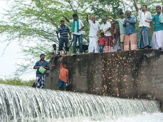 மலர் தூவி நீரை வரவேற்கும் மக்கள்