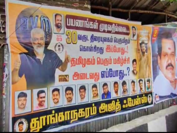 யாரும் ஒருங்கிணைக்காமல் குவிந்த அந்த கூட்டத்தை ஏமாற்ற விரும்பாத அஜித், கட்டடத்தின் மீது ஏறி, கைகளை அசைத்து, முத்தம் கொடுத்து அவர்களை உற்சாகப்படுத்தினார். இரவு வரை விடாமல் காத்திருந்த ரசிகர்களை, அவரும் ஏமாற்றாமல், வெளியே வந்து உற்சாகப்படுத்தி, பலத்த பாதுகாப்புக்கு இடையே அங்கிருந்து புறப்பட்டார். இது 11 ஆண்டுகளுக்குப் பின் நடந்த ரசிகர்கள் சந்திப்பு. அடுத்த சந்திப்பு எப்போது நடக்கும் என்பதும் தெரியாது. அதை அறிந்தவர் அஜித் மட்டுமே. வெளியே செல்லும் போது, அங்கிங்குமாய் ஒருவர் இருவரை சந்திப்பது என்பது வேறு; ஒருவருக்காக ஒரு கூட்டமே கூடி, அவர்களை சந்திப்பது என்பது வேறு. மங்காத்தா படப்பிடிப்பிற்கு பின், திருச்சியில் நடந்தது அது தான். இந்நிலையில் பயணங்கள் முடிவதில்லை. 30 வருட திரையுலகம் பெருமிதம் இப்போது, தமிழகம் பெரும் மகிழ்ச்சி அடைவது எப்போது? தலைமைச் செயலகத்துடன் மதுரையில் அஜித் ரசிகர்கள் போஸ்டர் ஒட்டியுள்ளனர்.