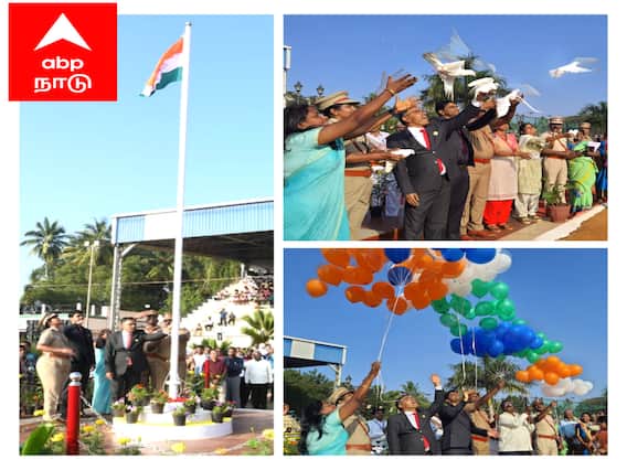 நாடு முழுவதும் இன்று 75வது குடியரசு தினவிழா கோலாகலமாக கொண்டாடப்பட்டு வருகிறது. குடியரசு தினவிழா முன்னிட்டு தமிழகத்தில் உள்ள அனைத்து மாவட்டங்களில் மாவட்ட ஆட்சியர்கள் தேசியக்கொடியை ஏற்றி வைத்து மரியாதை செலுத்தினர். அதன் ஒன்றாக மயிலாடுதுறை மாவட்டம் சாய் விளையாட்டு மைதானத்தின் 75 வது ஆண்டு குடியரசு தினவிழாவில் மயிலாடுதுறை மாவட்ட ஆட்சியர் மகாபாரதி தேசிய கொடியினை ஏற்றி வைத்து மரியாதை செலுத்தினார்.