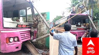 மரம், மின்கம்பத்தில் மோதி நின்ற பேருந்து