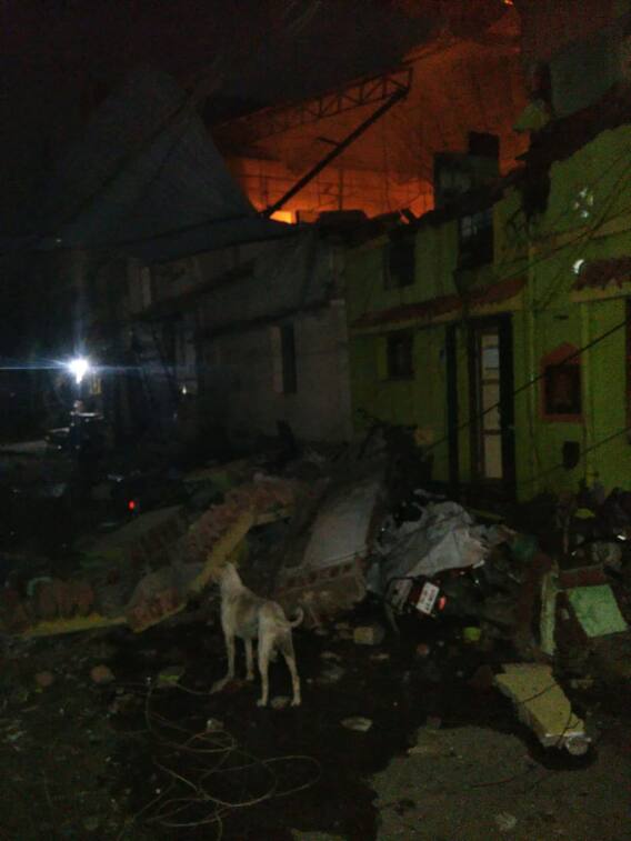 மேலும், வீட்டின் அருகில் உள்ள கல்யாண மண்டபம் மற்றும் அந்தப் பகுதியில் நிறுத்தி வைக்கப்பட்டிருந்த இருசக்கர வாகனங்கள் சேதம் அடைந்தது.