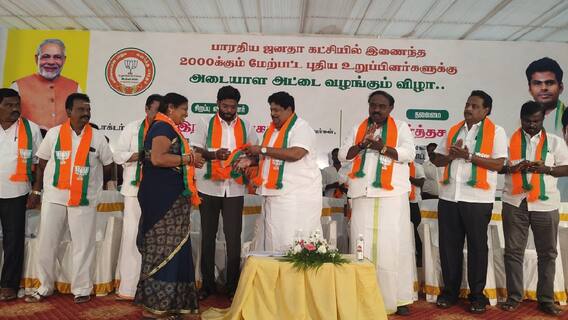சேலம் மாநகர் சூரமங்கலம் இரும்பாலை சாலையில் உள்ள தனியார் மண்டபத்தில் பாஜகவில் இணைந்த 2,000க்கும் மேற்பட்டோருக்கு உறுப்பினர் அட்டை வழங்கும் விழா இன்று நடைபெற்றது. பாஜக மாநில விவசாய அணி தலைவர் பார்த்தசாரதி தலைமையில் நடைபெற்ற விழாவில், புதிய உறுப்பினர்களுக்கான அடையாள அட்டைகளை பாஜக மாநில துணைத் தலைவர் கே.பி. ராமலிங்கம் வழங்கினார்.