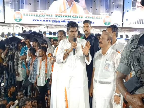 மழைநின்ற நேரத்தில் பாஜக தலைவர் அண்ணாமலை பேச துவங்கிய சிறிது நேரத்தில் மீண்டும் மழை கொட்ட தொடங்கியது. பொதுமக்கள் நனைவதை பார்த்த அண்ணாமலை மேடையில் இருந்து வெளியேறி திறந்தவெளியில் மழையில் நனைந்தவாறு சிறப்புரையாற்றினார். அப்போது அவர் பேசுகையில், “மயிலாடுதுறை மண்ணின் பெருமையை செங்கோல் மூலமாக பாரத பிரதமர் இந்தியா முழுவதும் எடுத்துச் சென்றுள்ளார். 1947இல் திருவாவடுதுறை ஆதீனம் அப்போதைய பிரதமர் நேருவிடம் வழங்கிய செங்கோலை, நேரு கைத்தடி என்ற பெயர் பதித்து அலகாபாத் அருங்காட்சியகத்தில் செங்கோல் வைக்கப்பட்டது. தற்போது புதிய பாராளுமன்றத்தில் அதே செங்கோலை திருவாசகம், கோளறு பதிகம், தேவாரங்கள் பாடப்பட்டு ஆதீனங்கள் கைகளால் பெற்ற பாரத பிரதமர் நரேந்திர மோடி பாராளுமன்றத்தில் நிறுவி மயிலாடுதுறை மண்ணிற்கு பெருமை சேர்த்துள்ளார். மயிலாடுதுறை மண்ணில் உள்ள திருவாடுதுறை ஆதீனத்திலிருந்து தரப்பட்ட செங்கோலை சாட்சியாக கொண்டு மூன்றாவது முறையாக நரேந்திர மோடி ஆட்சி அமைப்பார்.