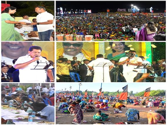 மேடை அலங்காரம் இன்னிசை கச்சேரி என தூத்துக்குடி தெற்கு மாவட்டமே அமைச்சர் அனிதா ராதாகிருஷ்ணனின் பிரம்மாண்ட நிகழ்ச்சியால் திக்குமுக்காடி போனது நாடாளுமன்றத் தேர்தல் முதல் சட்டமன்றம் உள்ளாட்சி என திமுக வெற்றி பெற்றுள்ள நிலையில் திமுகவின் நிர்வாகிகளை பாராட்டி 100 சவரன் தங்கச் செயின் கறி விருந்து இன்னிசைக் கச்சேரி மறுநாள் பெண்களுக்கென மெகா கோலப்போட்டி 20 சவரன் தங்கச் செயின் என பிரம்மாண்டம் காட்டும் அனிதா ராதாகிருஷ்ணனின் இந்தச் செயல் பிற மாவட்டங்களிலும் மாவட்ட செயலாளர்களால் நடத்தப்படுமா என திமுகவினர் மத்தியில் எதிர்பார்ப்பு மேலோங்கி உள்ளது.