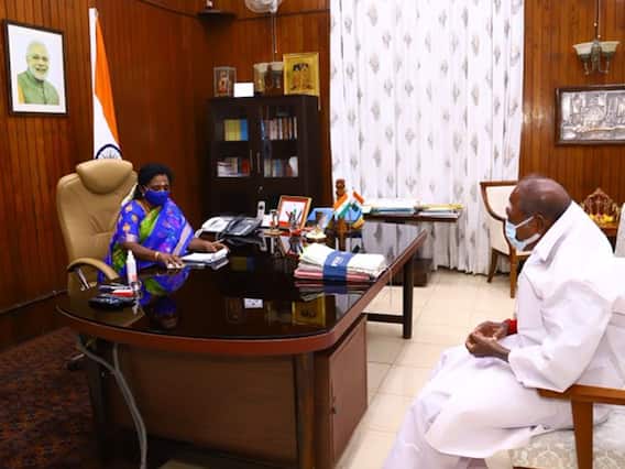 புதுச்சேரி மாநிலங்களவை தேர்தலில் ஆளும் கூட்டணியான என்.ஆர்.காங்கிரஸ்-பாஜக இடையே தொடர் இழுபறி நீடித்து வருகிறது. முதல்வர் ரங்கசாமி பிடி கொடுக்காததால் பாஜக மாநில தலைவர், பாஜக சட்டப்பேரவை தலைவர் ஆகியோர் டெல்லி விரைந்துள்ளனர். இச்சூழலில் ராஜ்நிவாஸில் ஆளுநர் தமிழிசையை முதல்வர் ரங்கசாமி திடீரென்று சந்தித்தார்.