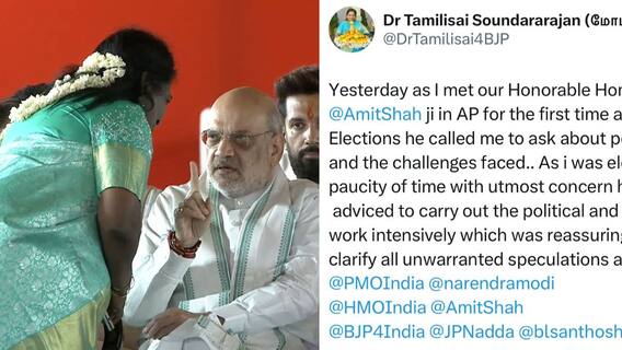 வைரல் வீடியோ தொடர்பாக தமிழிசை வெளியிட்டுள்ள டிவிட்டர் பதிவில், “நேற்று நான் நமது மாண்புமிகு உள்துறை அமைச்சர் அமித் ஷா வை 2024 தேர்தலுக்குப் பிறகு ஆந்திராவில் முதன்முறையாக சந்தித்தேன். அப்போது, அவர் என்னை அழைத்து தேர்தலுக்கு பிந்தைய சூழல்கள் மற்றும் எதிர்கொள்ளும் சவால்கள் பற்றிக் கேட்டறிந்தார். அதுபற்றி நான் விவரித்துக் கொண்டிருந்தபோது, நேரமின்மையால் மிகுந்த அக்கறையுடன் அவர் அரசியல் மற்றும் தொகுதிப் பணிகளை தீவிரமாக மேற்கொள்ள அறிவுரை கூறினார். தேவையற்ற ஊகங்களை தெளிவுபடுத்துவதற்கான இதனை பதிவிடுகிறேன்” என குறிப்பிட்டுள்ளார்.