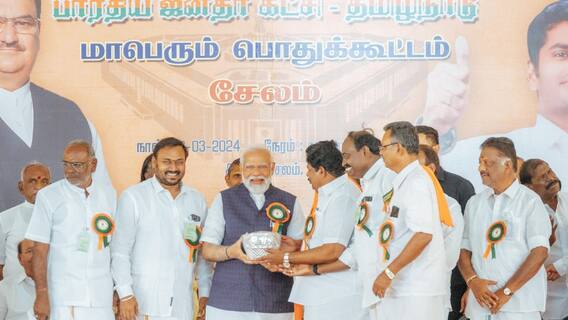 சேலம் கெஜ்ஜல்நாயக்கன்பட்டியில் பாரதிய ஜனதா கட்சி சார்பில் பிரதமர் மோடி பங்கேற்ற பிரச்சார பொதுக்கூட்டத்தில் பாஜக முக்கிய நிர்வாகிகள் உரையாற்றினர்.