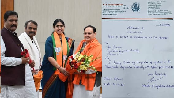 இந்த நிலையில் அவர் நேற்று பாஜகவில் இணைந்தார். இதனைத் தொடர்ந்து தனது எம்.எல்.ஏ., பதவியை ராஜினாமா செய்வதாக தெரிவித்துள்ளார். முன்னதாக கட்சி மாறிய அவர் மீது கட்சி தாவல் தடை சட்டத்தின் கீழ் நடவடிக்கை எடுக்கப்பட்டு அவரது சட்டமன்ற உறுப்பினர் பதவி பறிக்கப்படும் என தமிழ்நாடு காங்கிரஸ் கமிட்டி தலைவர் செல்வ பெருந்தகை கூறியிருந்தார். ஆனால் அதற்குள்ளாகவே விஜயதரணி தனது பதவியை ராஜினாமா செய்துள்ளார் என்பது குறிப்பிடத்தக்கது.