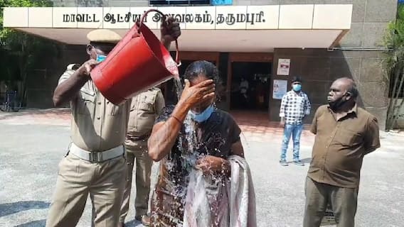 இதேபோல் தருமபுரியை அடுத்த சவுளுப்பட்டியை சேர்ந்த சாரா என்பவர் தனது 2.5 ஏக்கர் விவசாய நிலத்தை மதிக்கோன்பாளையத்தை சேர்ந்த ஜீவா என்பவர் ஆக்கிரமிப்பு செய்து கொண்டு, தன்னை மிரட்டி வருவதாகவும், அவர் மீது நடவடிக்கை எடுக்க வலியுறுத்தி தருமபுரி நகர காவல் நிலையத்தில் புகார் அளித்தும் எந்தவித நடவடிக்கையும் எடுக்கவில்லை. இதனால் தனது நில பிரச்சனையை தீர்த்து வைக்க கோரியும், தன்னை ஏமாற்றி வரும் ஜீவா மீது நடவடிக்கை எடுக்கக் வலியுறுத்தி, சாரா மாவட்ட ஆட்சியர் அலுவலகத்தில் தீ குளிப்பதற்காக மண்ணெண்ணெய் கேனுடன் ஆட்சியர் அலுவலகத்திற்கு வந்தார்.