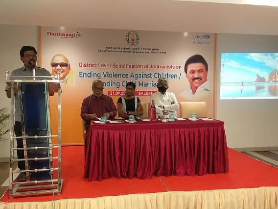 இப்போதைய அரசு, சமூக நலத்துறை அமைச்சர் இதில் ஆர்வமாக உள்ளனர். இந்திய அளவில் முதல்முறையாக ஒருங்கிணைந்த குழந்தை நல பயிற்சி மையம் ரூ.27 கோடி மதிப்பில் செங்கல்பட்டு மாவட்டத்தில் அமைக்கப்பட உள்ளது. சேலம் மாவட்டத்தில் தேசிய அளவிலான சராசரியை விட 23.3 சதவீதம் குழந்தைத் திருமணங்கள் நடைபெற்று வரும் நிலையில், இதைத் தடுப்பதற்கு ஊடகத்தினரும் தங்களுடைய பங்களிப்பை செலுத்த வேண்டும்" என்று கூறினார்.