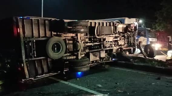 தருமபுரி மாவட்டம் ஒகேனக்கல் பகுதியில் பணியை முடித்து விட்டு, கழிவுநீர் சுத்திகரிப்பு வாகனம் இன்று நள்ளிரவில் சேலம் நோக்கி சென்று கொண்டிருந்தது. அப்பொழுது தருமபுரி- சேலம் தேசிய நெடுஞ்சாலையில் தொப்பூர் அருகே சென்றுக் கொண்டிருந்த போது, லாரி திடீரென பழுதானது. இந்த வாகனத்தில் பழுது நீக்கும் பணியில் திருச்சி மற்றும் விருதுநகர் பகுதியைச் சேர்ந்த 12 பேர் ஈடுபட்டுக் கொண்டிருந்தனர். அப்போது கிருஷ்ணகிரியில் இருந்து கற்கள் பாரம் ஏற்றி சேலம் நோக்கி சென்று கொண்டிருந்த லாரி, ஓட்டுநரின் கட்டுப்பாட்டை இழந்து சாலையில் நின்றிருந்த கழிவுநீர் சுத்திகரிப்பு வாகனத்தின் மீது மோதி விபத்துக்குள்ளானது. அப்போது கற்கள் பாரம் ஏற்றி வந்த லாரியை பின் தொடர்ந்து, குஜாராத்தில் இருந்து அவினாசி க்கு உருளைக் கிழங்கு ஏற்றி வந்த லாரி மற்றும் அதனையடுத்து வந்த மற்றொரு சரக்கு வாகனம் என அடுத்தடுத்து 3 லாரிகள் மோதி சாலையில் கவிழ்ந்து விபத்துக்குள்ளானது.