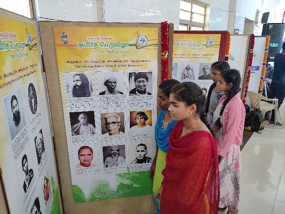 நிகழ்ச்சியில் பேசிய சேலம் மாவட்ட ஆட்சியர் கார்மேகம், அறியப்படாத ஆளுமைகளை அடையாளப்படுத்திடும் வகையில் மக்கள் தொடர்பகம் நடத்தும் இதுபோன்ற கண்காட்சிகள் பல்வேறு தகவல்களை மக்களுக்கு தெரியப்படுத்துகிறது. சேலம் மாவட்டம் சங்ககிரியைச் சேர்ந்த பெருஞ்சித்திரனார் போன்ற ஆளுமைகளை இதுபோன்ற கண்காட்சிகள் தெரிந்து கொள்ளும் போது இளைஞர்கள் உள்ளூர் வரலாற்றை முழுமையாக அறிந்து கொள்கின்றனர். உள்ளூர் வரலாற்றில் இருந்துதான் மாநில வரலாறு எழுதப்படுகிறது. ஒருங்கிணைந்த சேலம் மாவட்டத்தில் பிறந்தவரான மூதறிஞர் ராஜாஜி சேலம் நகராட்சித் தலைவராக இருந்தபோதுதான் மதுவிலக்கு இங்கு அமல்படுத்தப்பட்டது. மத்திய அரசின் மக்கள் நலத்திட்டங்களை முழுமையாக பொதுமக்கள் தெரிந்து கொள்ளும் வகையில் தமிழில் தகவல்களை வெளியிட்டுள்ளது பாராட்டுக்குரியது. பிரதமரின் கெளரவ நிதித்திட்டத்தின் கீழ் சேலம் மாவட்டத்தில் ஒரு லட்சத்து 28 ஆயிரம் விவசாயிகள் பயனடைந்து வருகின்றனர். அவர்களுக்கு தலா ரூ.2 ஆயிரம் உதவித் தொகை மூன்று தவணைகளாக, அவர்களின் வங்கிக் கணக்கிற்கே அனுப்பப்படுகிறது. இது மிகச்சிறந்த முயற்சியாகும் என்று பேசினார்.
