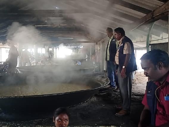 பொங்கல் பண்டிகை வருவதற்கு முன்னிட்டு வெல்லம் தயாரிக்கும் பணி பல இடங்களில் நடைபெற்று வருகிறது. சில இடங்களில் வெல்லம் மற்றும் நாட்டு சர்க்கரையில் கலப்படம் செய்து தயாரிக்கப்படுகிறது. சேலம் மாவட்டத்தில் பல்வேறு இடங்களில் வெல்லம் தயாரிக்கும் ஆலைகளில் கலப்படம் செய்யப்படுவதாக உணவு பாதுகாப்புத்துறை அதிகாரிகளுக்கு ரகசிய தகவல் கிடைத்துள்ளது. சேலம் மாவட்ட நியமன அலுவலர் உத்தரவின் பேரில் உணவு பாதுகாப்பு அலுவலர்கள் கண்ணன், குமரகுருபரன், ரமேஷ் ஆகியோர் அடங்கிய குழுவினர் சங்ககிரி அடுத்துள்ள தேவூர் அஞ்சல், சோலக்கவுண்டனூர் பகுதியில் அமைந்திருந்த குடோனில் தீடிர் சோதனை நடத்தினர்.
