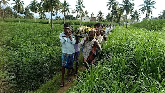 இந்நிலையில் இந்த கிராமத்தில் உயிர் இழப்புகள் ஏற்படும் நேரங்களில் சடலங்களை மயானத்துக்கு எடுத்துச் செல்லும்போது, விவசாய நிலங்களின் வழியாகவே எடுத்துச் செல்ல வேண்டிய நிலை இருந்து வருகிறது. இந்த நிலங்களில் பயிர் சாகுபடி செய்திருந்தால், கூட சடலங்களை எடுத்துச் செல்வதற்கு அந்த நிலத்தின் உரிமையாளர்கள் எந்த வித எதிர்ப்பும் தெரிவிக்காமல் இருந்து வருகின்றனர். சில நேரங்களில் நெல், மரவள்ளி, ராகி, மஞ்சள் உள்ளிட்ட பயிர்கள் சாகுபடி செய்யப்பட்டு இருக்கும் நேரத்தில் கூட, கிராம மக்கள் சடலங்களை அந்த வயல்களின் வழியாக எடுத்துச் செல்கின்றனர். இதனால் விவசாய பயிர்கள் அந்தப் பகுதியில் சேதம் அடைகிறது. இதற்கிடையில் அங்குள்ள விவசாய நிலங்களில் தற்போது மரக்கன்றுகள் நடப்பட்டு வளர்ந்து நிற்பதால் தேர்பாடை அமைத்து இறந்தவர் சடலத்தை எடுத்துச் செல்லமுடியாத நிலை ஏற்பட்டுள்ளது. மேலும், சாதாரண பாடை மூலம் சடலத்தை எடுத்துச் செல்வதே சிரமமான காரியமாக உள்ளது.